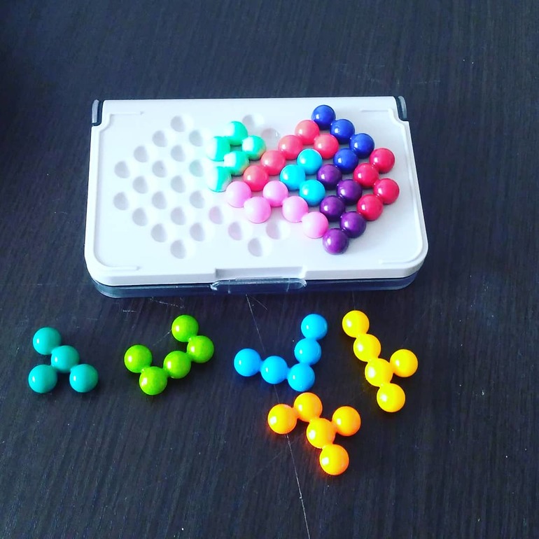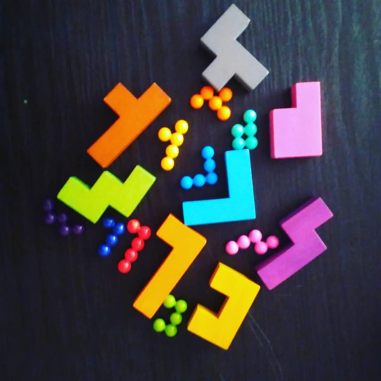 "Как катамино" - первая мысль, которая возникла после покупки игры IQ спутник гения от Бондибон. Большинство деталей по форме совпадают с фигурами Катамино ( головоломки, похожей на тетрис). Поэтому, если нарисовать поле, то будет отличная замена.