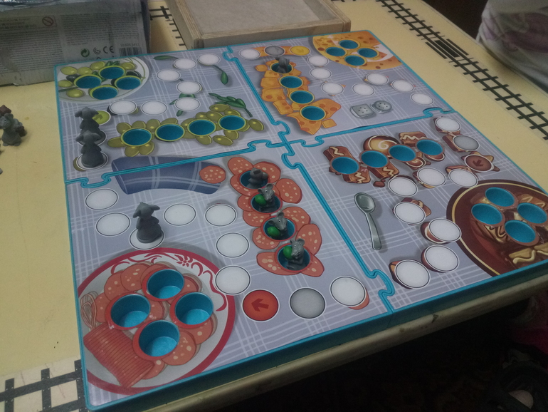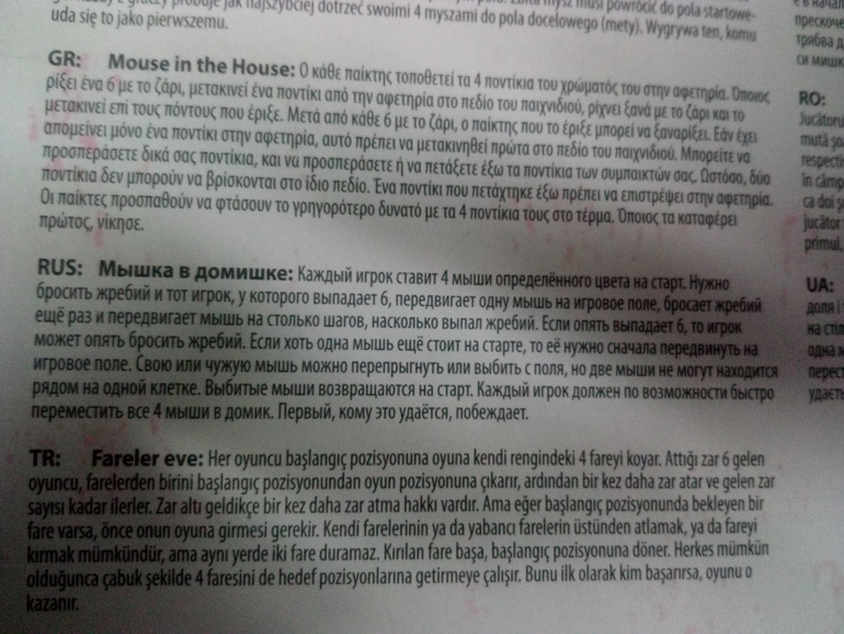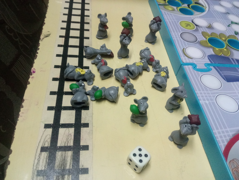 Кинь-двинь, иди. Без 6-ки не начать. 6-ка выводит игрока из норки на старт или позволяет сделать еще один шаг. Написано, что соперника можно столкнуть (но не написано, что это обязательно), можно ли разбивать ходы на нескольких мышат и можно ли перепрыгивать через 2-3-х и прочее. Ну, да, Бог с ними, есть же свои правила всегда для этого.