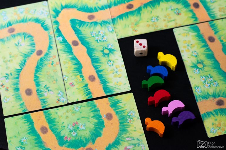Банда черепашек - игра микс: правила игры и поля от замечательной игры Rüsselbande - Банда пятачок, черепашки позаимствованы из игры La Tortuga. Бросил кубик - передвинул на нужное количество шагов черепашку. Если то место, куда нужно переставить фишку, занято, то мы не перепрыгиваем, а запрыгиваем на спину, образуя башни из от-двух-до-семи черепашат. В свой очередной ход тот игрок, на спине которого уже кто-то сидит, двигает свою фишку и фишку соперника(-ов) одновременно. Очень просто и очень весело. Есть ещё пара несущественных нюансов в правилах, которые вносят разнообразие.