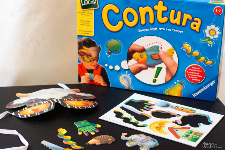 И ещё одна пара игр, перешедших из прошлого игрового года - на угадывание предметов на ощупь: Контура (Слепая корова) от Ravensburger и тактильное лото, наподобие того, что у DJECO (я сверстала несколько полей для игры с имеющимися дома фигурками ПВХ / коллекционными Collecta, Schleich).