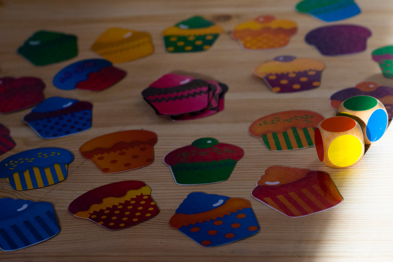 Muffin (Маффины\Кексы) от Granna, начали играть чуть раньше трех лет. Бросаем два кубика и хватаем кекс с нужной комбинацией цветов. Если заданная комбинация уже выпадала, и потому отсутствует на столе, хватаем кекс-джокер в центре стола. Игру дочка часто приносит сама, хоть нужные кексы ищет не так быстро, как взрослые.