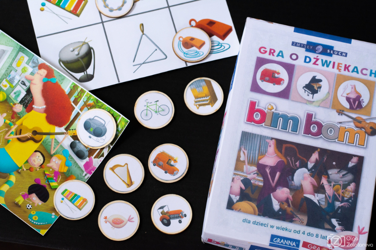 Ну и BimBom, Игра о звуках от Granna. Классное звуковое лото, играем с двух лет с небольшим, делая перерывы в пару месяцев для того, чтоб всё как следует забылось))). Особенно сложным и полезным было и остается распознавание звуков музыкальных инструментов. В последние месяцы именно распознаванию муз. инструментов, в том числе в многокомпозиционной мелодии, дочка уделяет особое внимание, поэтому пришло время мне игру расширить. Надеюсь, как-нибудь удастся оформить.