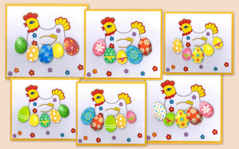 Кстати, играть в эту игру можно и деткам по-старше, если ,например,распечатать по два набора яиц(если два игрока ит.п.) и собирать их по образцу наперегонки.🙃