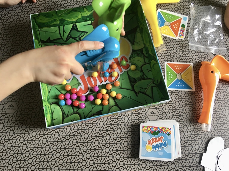 Я недавно писала об этой игре. Яркая, с необычными компонентами, на скорость. Очень нам нравится. Рекомендована на возраст 5+, но интересна и не так уж проста, если играть с равным соперником. Нашему гостю сначала показалась игра сложной. В первой партии выиграла дочка. Но через время мальчик снова захотел поиграть в эту игру и выиграл. В общей сложности сыграли 4 партии в течении дня.