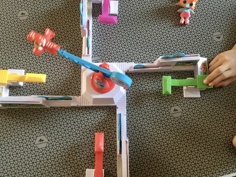 Очень-очень нравится этому мальчику. Это та игра, которую он бы очень хотел иметь дома. Таракану мы тоже как раз вставили новые батарейки, так что он не бегал, он практически летал по лабиринту. Много смеялись дети, да и я вместе с ними. Выиграл наш гость. Сколько было радости!