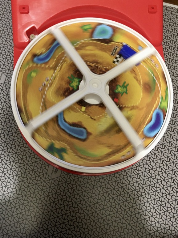 Наш друг попросил ещё что-нибудь такое же интересное найти, я вспомнила про эту машинку. И идея достать её попала в цель. Мальчики почти час по очереди крутили руль, выставляли препятствия, соревновались. Было интересно наблюдать за ними.