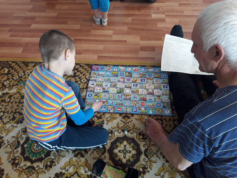 Сейчас немного её убрала чтобы соскучился. В неё играли все кто бывал в нашем доме и не один раз, даже моя кума, которая старательно избегает меня с моими играми, не смогла отказать крестнику. Ребенок выучил наизусть все знаки и действия изображенные на поле, но это ему не мешает играть в неё еще и еще сотни раз)))