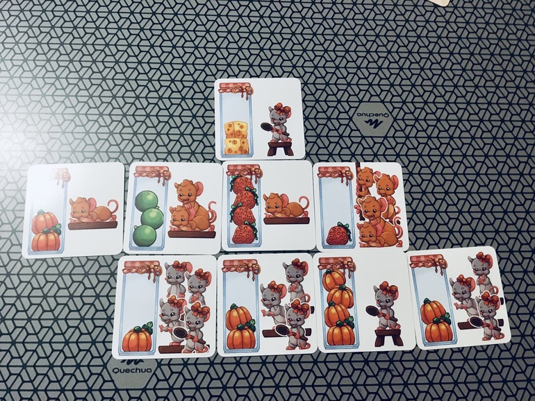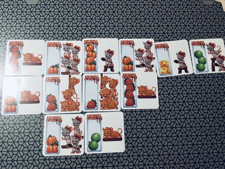 Новинка от издательства Эврикус. Рекомендована с 5 лет. Коробочка маленькая, вся игра такая ладненькая. Процесс пока не особо оценили. Я не поняла ещё, то ли игра такая простая, то ли мы что-то делаем не так. Цель: собрать в ряду 10 мышек своего цвета или 10 единиц своей еды, выкладывая в свой ход случайным образом одну карту.