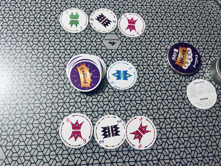 Ещё одна моя любимица. Миниатюрная игра на сбор сетов. Уже скоро год , как она у нас появилась. Партий сыграно уж точно больше сотни. Мы её и на отдых брали, и в учебном году часто возили с собой , и играли в ожидании занятий, и дома не забывали. Сын , к сожалению, пока не может составить компанию, ему ещё сложно в 8 лет вовремя поменять решение в сборе того или иного сета, грамотно выстроить возможности, следить за тем, какие карты берет соперник и сбрасывает. А вот дочка - мой полноценный соперник. Игра ей абсолютно по плечам, играем на равных. Выигрываем по очереди. Сегодня удача была на моей стороне.