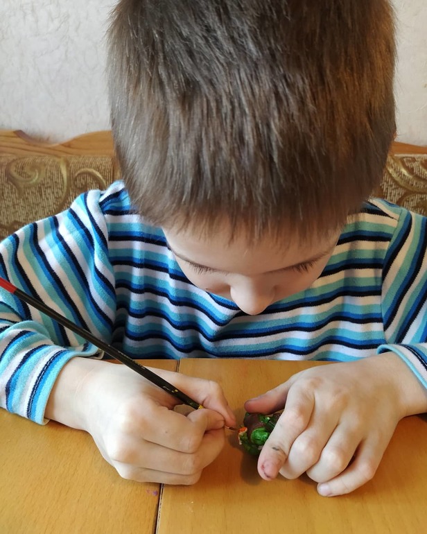 Да, на ура развивает мелкую моторику, конечно основной фронт работ за мной, но и ребенок помогал. Самое главное не боятся краски, даже если где что не так покрасить, можно закрасить.