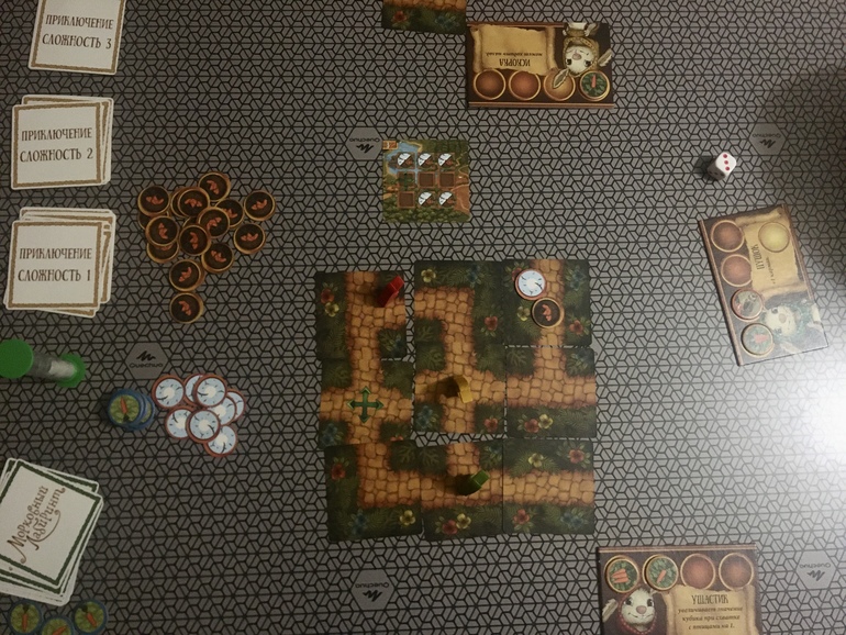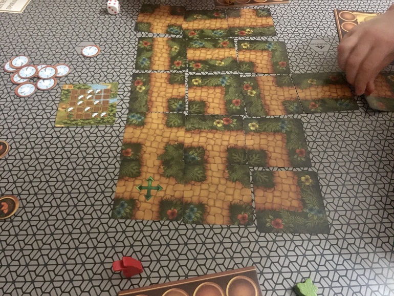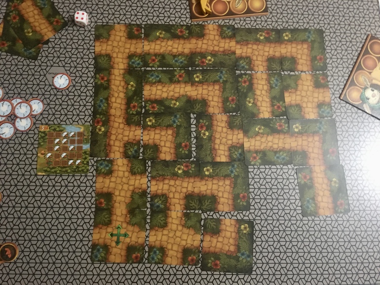 А вот 5*5 лабиринт так и не смогли собрать до конца плюс допустили ошибку в выкладке тайлов, за это лишились сразу аж четырёх бонусных морковок.