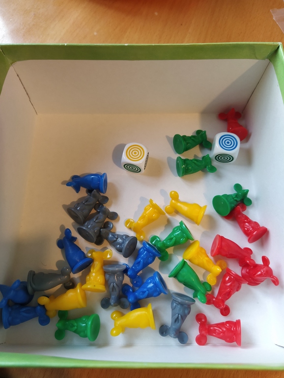 Для любителей риска, где если игроку удалось поймать по 1 мышке каждого из 5 цветов, он сразу прячет их и продолжает ход, т.е. снова бросает кубики.
