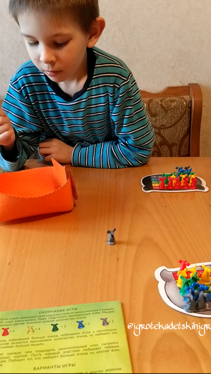 Производитель предполагает, что если игрок завершит свой ход и на столе меньше 5 мышей, то игра заканчивается. Мы же играем до последней мышки.