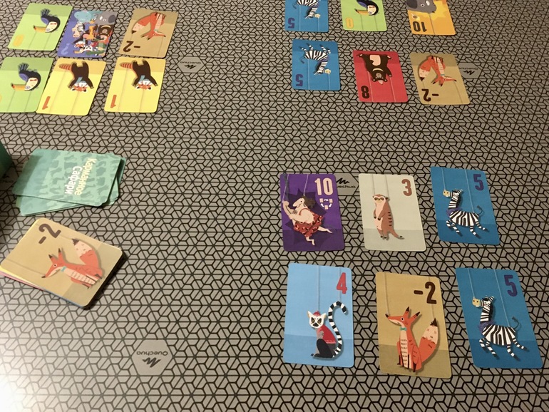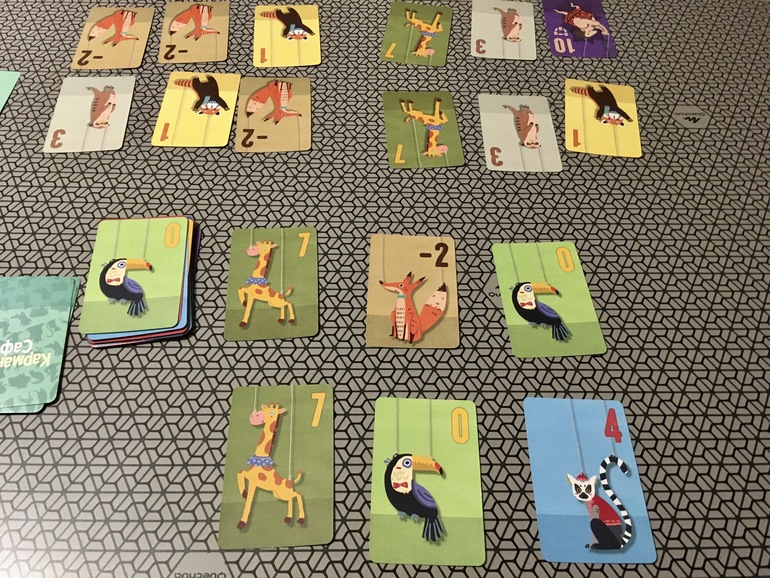 Выбрал сын . Сыграли одну партию до 50 очков. Так весело было. Особенно запомнился момент, когда я, владея королевой собак, предрекла в свой ход открытие карты с королевой кошек. Так и случилось. Ох и смеялись дети! Но выиграла всё равно я.