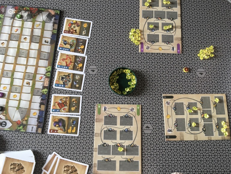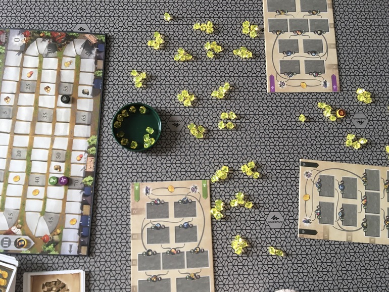 Мне очень-очень нравится . И выбрала игру сегодня я. Я писала о наших первых впечатлениях раньше. На данный момент они только укрепились. Игра превосходная, на мой взгляд. Играла всё это время с детьми, хотя, конечно, ни о каком соперничестве речь не шла. Но это было до сегодняшнего дня. Потому что в нынешней партии мне тотально не везло с картами. У детей планшеты ломились от ресурсов, а кошельки от золота, а у меня ни того, ни другого.