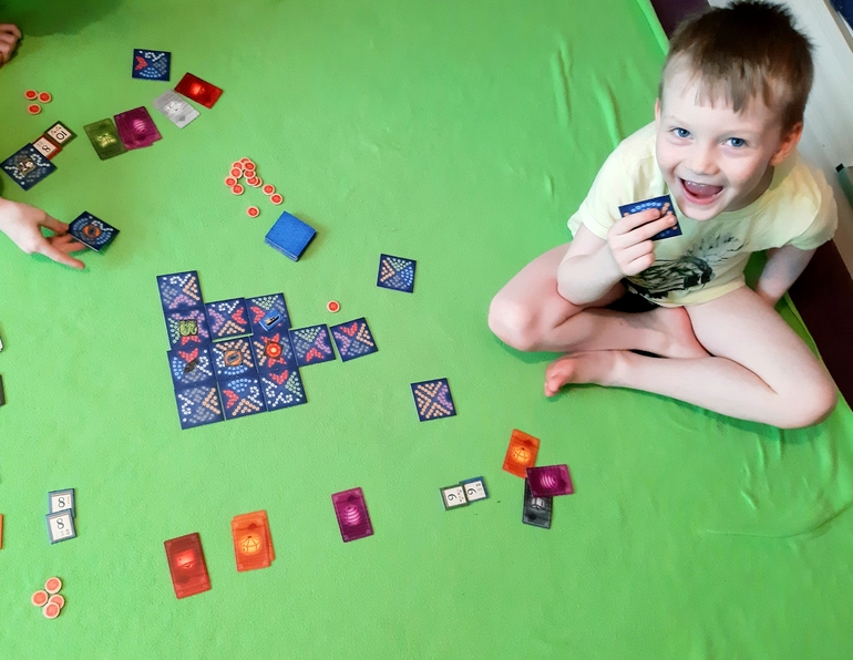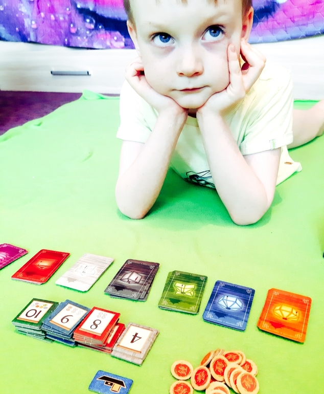 Игра очень красивая, много компонентов, вся такая "взрослая")) у нас-то преимущественно "малышовые" игры)) места, кстати, занимает не мало.