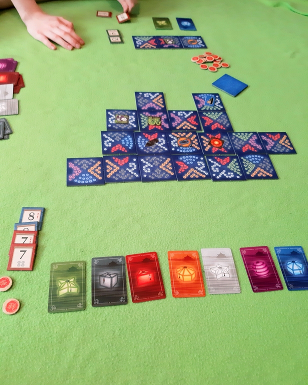Подробно расписывать процесс не буду. Общий смысл в том, что бы выложить тайл с фрагментами прудика и фонариками, забрать себе фонарик определённого цвета, а в следующий ход накопленные фонарики (если достаточно уже собрано) поменять на баллы.