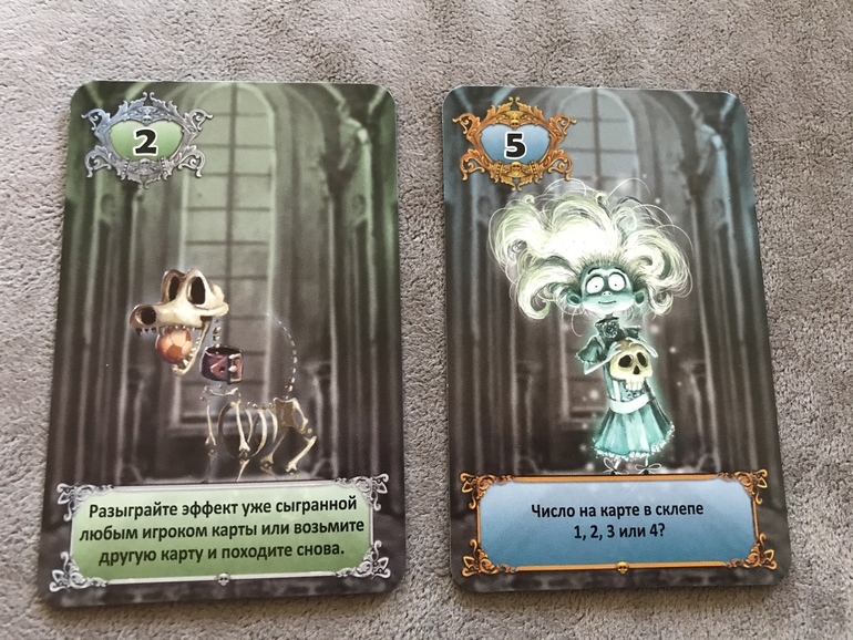 Еще одна наша новинка - "13 привидений". Игра очень понравилась дочке. И я, и дочка пишем цифры на листочке от 1 до 13, так проще, но все равно интересно. Партии проходят быстро, одна заканчивается - начинается новая. Мне постоянно попадалась собака в начале каждой партии, я даже смеяться начала, а дочка догадалась почему. Дочка постоянно выбирала девочку в свой склеп. На третий раз, когда я с первой попытки угадала ее цифру, дочка очень удивилась.