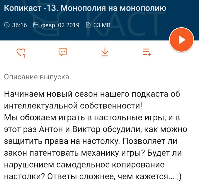 обсуждения, вопросыНабрела на интересный аудиоблог https://castbox.fm/va/1453120. Называется "Копипаст", основная тематика - авторское право и интеллектуальная собственность. Слушаю сейчас интервью с Антоном Сковородиным, директором GaGa.