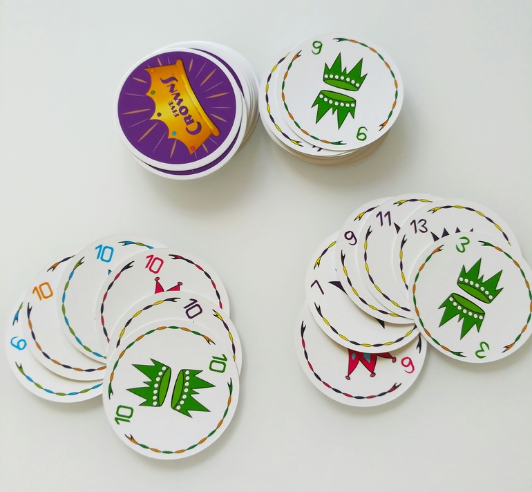 Пять корон сыграли только одну партию, игра состоит из 5 раундов, в которых нужно собирать сеты - из одинаковых цифр или последовательности цифр одного цвета. Кто первый собрал тот молодец, а второй игрок получает штрафные очки по тем картам что у него на руках. В первом раунде раздается по 3 карты и 3 - джокер, идёт за любую карту и цвет, следующий раунд 4 карты, 4 джокер и так далее. В свой ход игрок берет карту либо из колоды либо из верхнюю из сброса, в сбросе карты открыты. Одну взял , одну скинул. Иногда очень сложно решить какую же скинуть, ведь не знаешь какая карта дальше будет, то ли прийду ещё 4 к примеру то ли лучше последовательность брать..