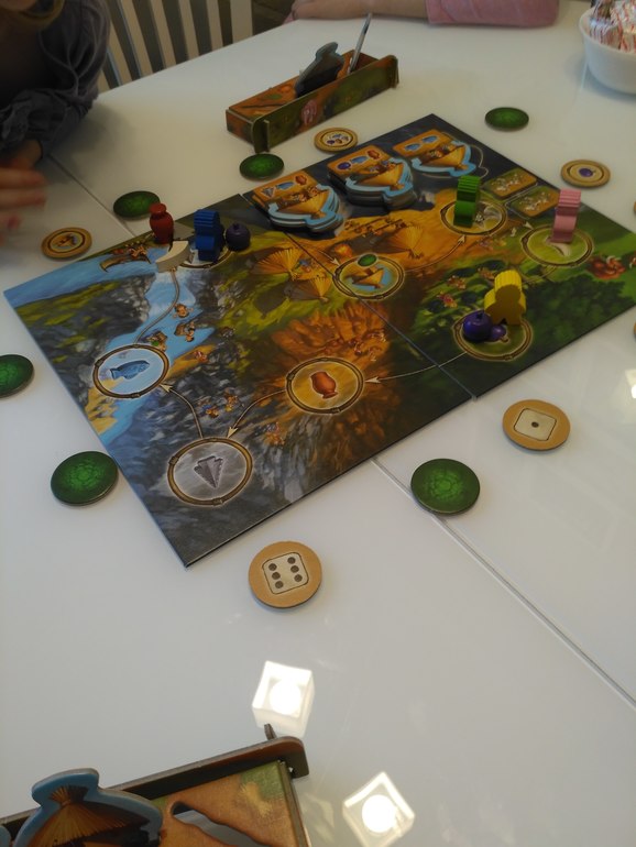 Артифициум, любим, периодически играем, сегодня разложили с Аней. В игре нужно одни ресурсы преобразовывать в другие, зарабатывая при этом очки. Выиграла я.