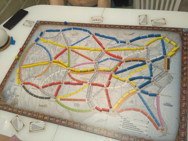Ну и напоследок сегодня был Билет на поезд, выиграл опять муж!! Но разрыв у нас у всех не большой. Самый длинный маршрут его - 34 паровоза!!