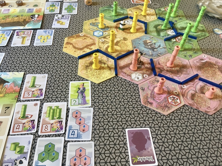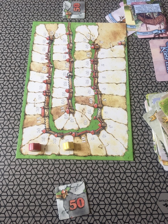 Выбрала дочка. Ещё одна игра из моего личного списка самых любимых. Красивая, несложная, интересная, отлично играется с детьми. Добротная семейная красавица. Всю партию мы с дочкой шли с одинаковым набором выполненных заданий. Лишь в самом конце мне удалось вырваться вперёд и победить.