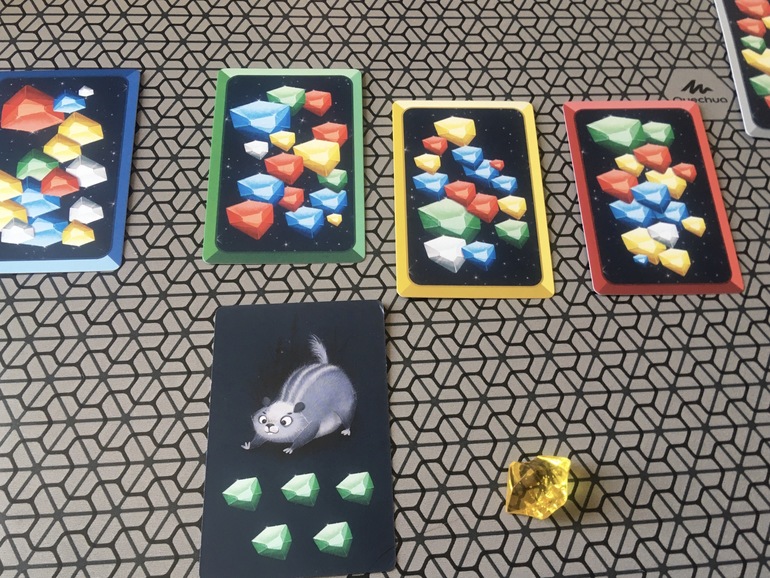Неожиданно выбрал сын. Я была уверена, что после вчерашней экспериментальной партии , мы к Звездопаду больше не вернёмся. Но сын меня удивил. Игра ему нравится, даже при честной борьбе у него уже значительно лучшие результаты, поэтому отказываться играть он, как оказалось, не собирался. Наоборот, Звездопад его заинтриговал. Сыграли с ним вдвоём одну партию. Честно составляли цепочки для поиска, но вот результат , как и вчера, 7 раз из 10 раундов совпал с цветом камня на карточке с заданием.