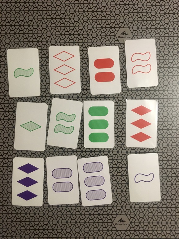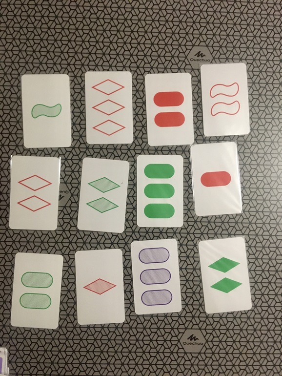 Уже напоследок , в рамках проекта «Играем вместе», мы с дочкой разложили сет. Довольно неплохо и быстро мы искали комбинации. Случалось , правда, пару раз, отчаивались , добавляли ещё один ряд карт, а потом оказывалось, что сет всё-таки был.