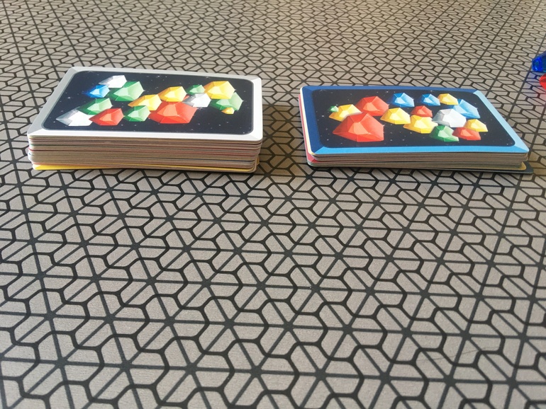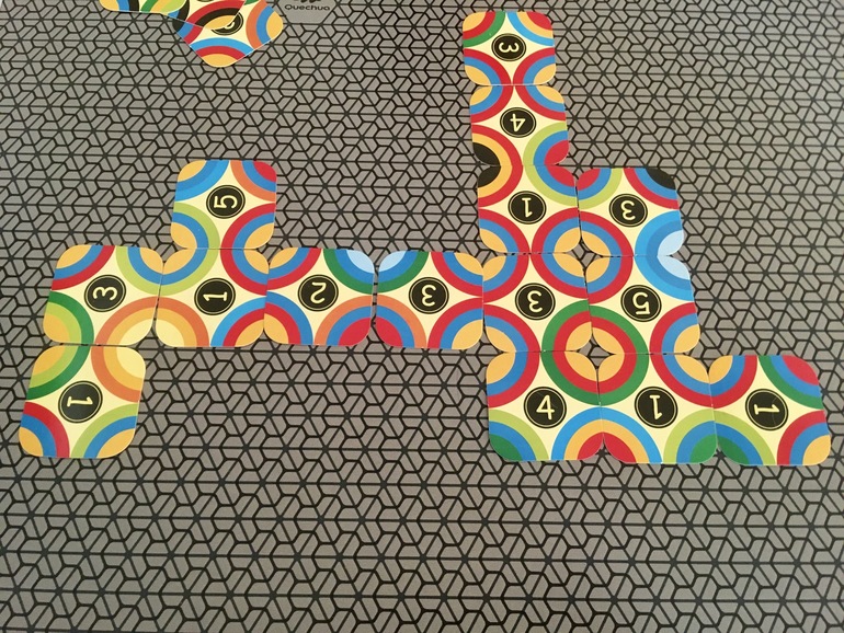 Играли с сыном рано утром, пока дочка ещё спала. По механике похожа на всякого рода усложнённое домино. Но значительно сложнее знакомых мне подобных игр. Доиграть не смогли, правила написаны не совсем понятно. Нет ни слова о том, нужно ли добирать карты, если нечем походить, и если нужно , то сколько. Какая-то безысходность ощущалась каждый ход.