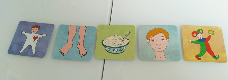 Сначала мы сыграли с Аней вдвоем, выбрали вариант без повтора истории, просто выкладывая карту и продолжать историю.