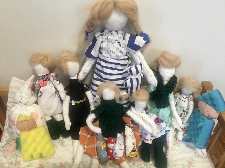 Дочка сшила 7 кукол и ещё 8 гномиков.