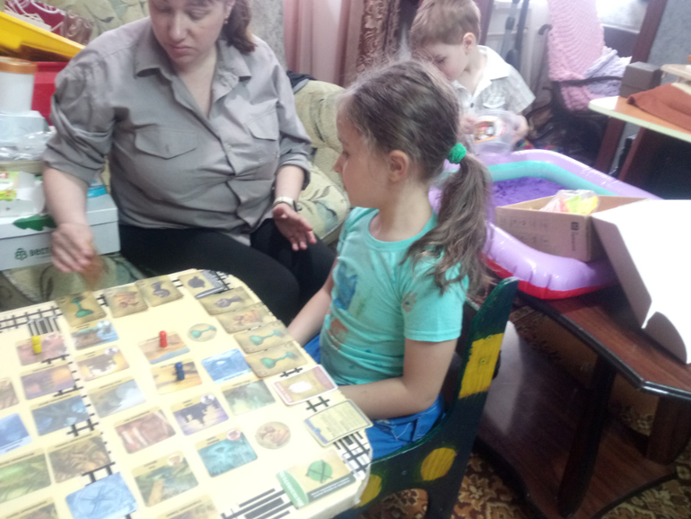 Как оказалось, в первый раз мы играли неправильно - карты затопления брали по одной, пока поплавок не пересек цифру 2. Потому и выиграли. Во второй раз мы играли по правилам и все равно выиграли. Может, потому, что у нас появился четвертый игрок - повар. Он готовил нам пироги. Правда, потом у него там стала разыгрываться какая-то трагедия - в еде кто-то тонул и его уже не спасти.