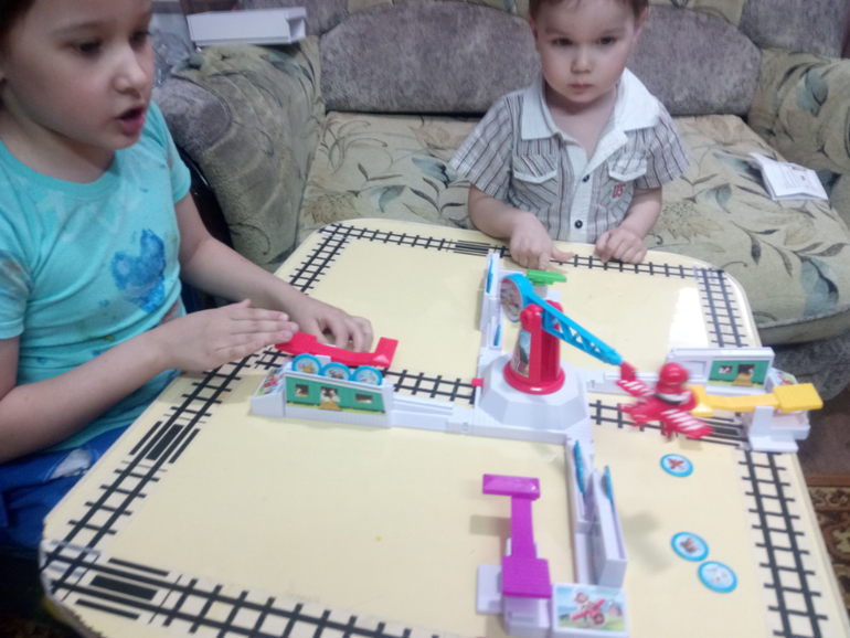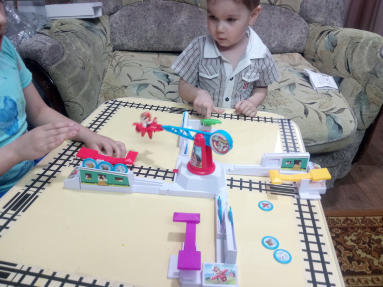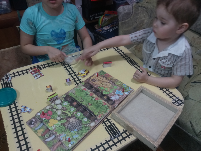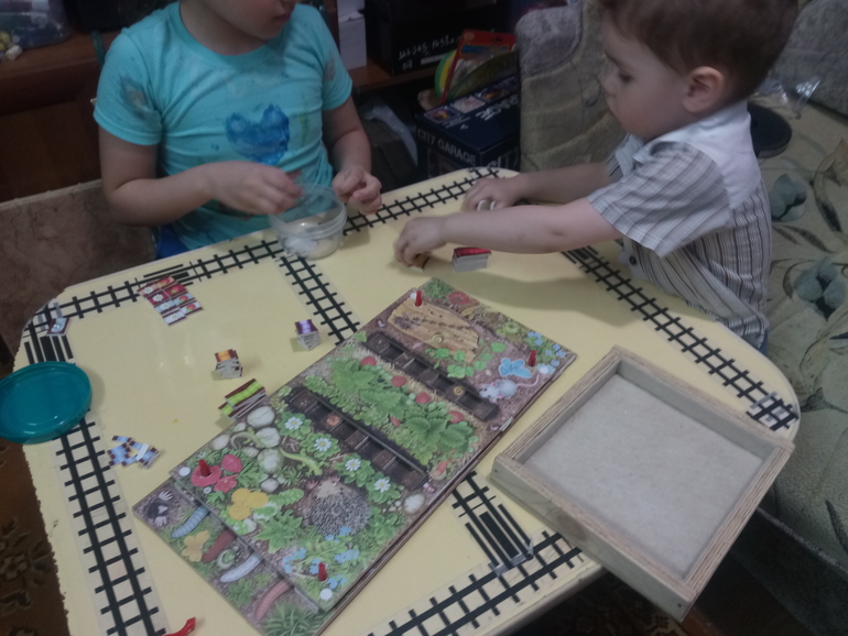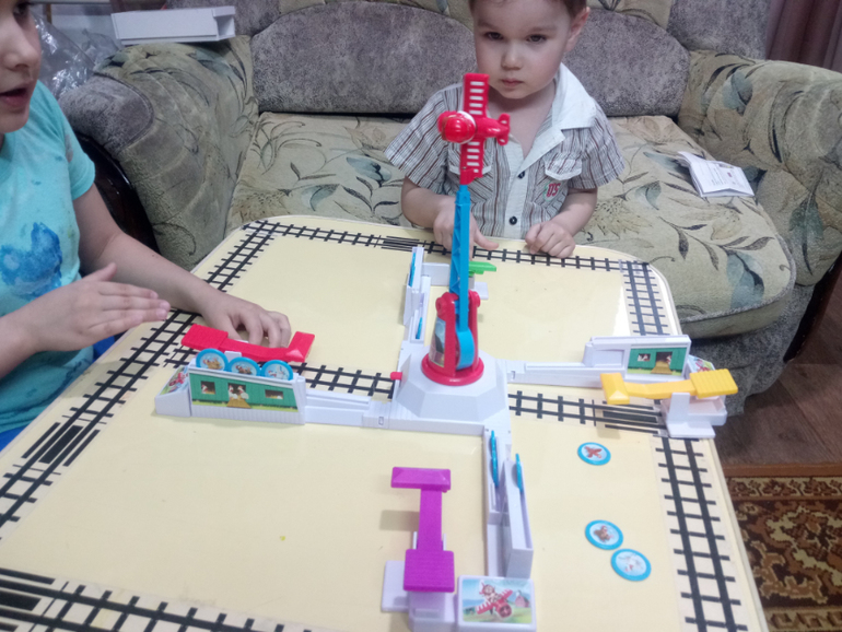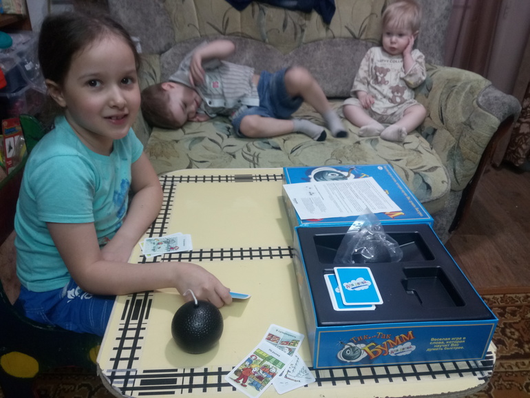 Сын на каждый свой ход смеялся как ненормальный и вообще не мог усидеть и потому затребовал еще что-нибудь. Окай: