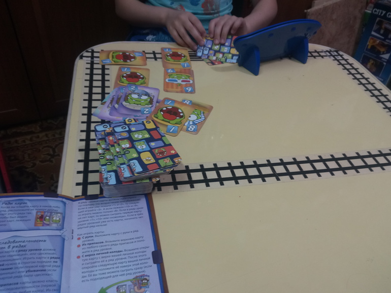 Фиг-то там! Убрал, пока не прочту нормально правила. К тому же колода новая. Ее надо полчаса минимум перетасовывать. Надо размять пальцы