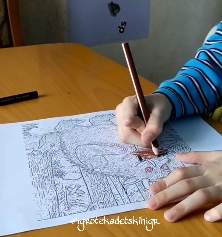 Дети разрисовали животных, немного залезали за края конечно, но это не страшно, я потом зверушек вырезала и это убралось.