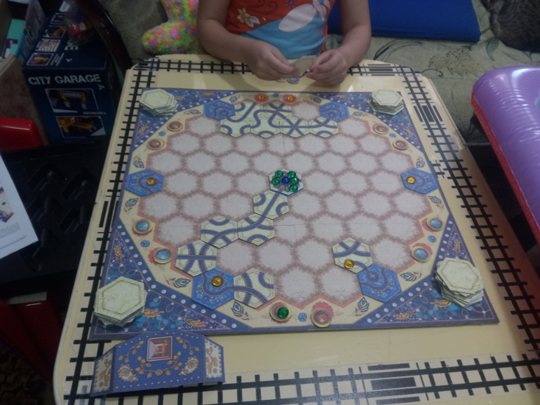 Я достал доче еще один свой долгострой - его пнп я напечатал еще в лихие 90-е года три назад, собрал недавно и оказалось совсем не угадал в размер. И тут, когда я его почти закончил, на "моей распродаже" мне попалась заводская игра! И более того, она досталась мне бесплатно! А все потому, что была полностью неиграбельна - коробка была полна воды. :(((((( Но! Камешки, размеры тайлов (с которыми я угадал 97%!) и органайзер были в порядке. Итак: