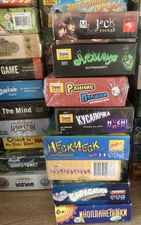 И отдельно сфотографировала я те игры, в которые мы не играли ещё.