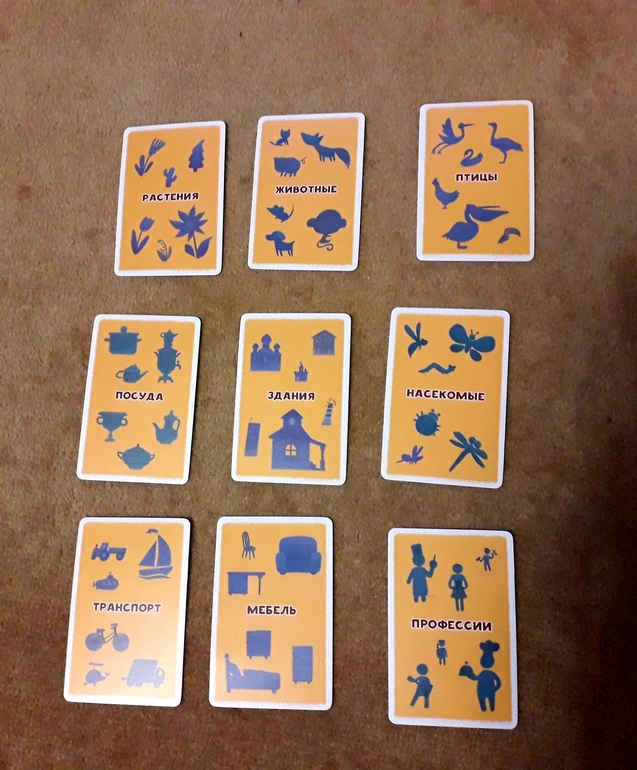 Раскладываем маленькие карточки вариантов, готовим коробочку с большими рисунками. Достаём рисунок и пытаемся определить, к какой группе он принадлежит. Увидели? Нужно быстрее соперника накрыть эту карту варианта.