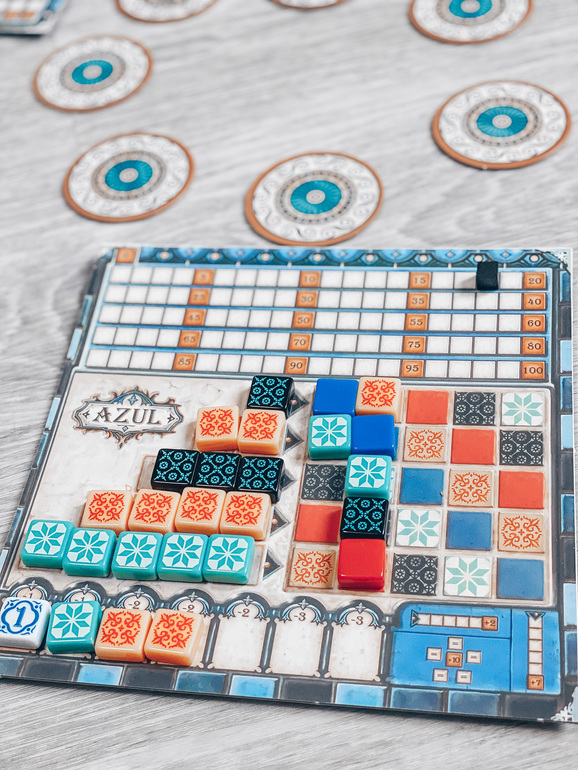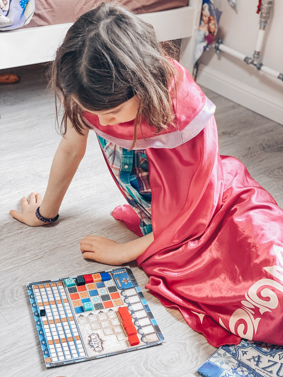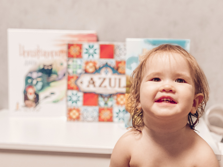 Игровые дневникиПосле работы я уговорила всех поиграть. Очень хотелось достать новинки, в которые мы с детьми успели сыграть накануне. У ним относится Азул, приехавший с Али, и Лоскутное королевство, приехавшее с Майшопа. Азул я хотела сильно, по всем рейтингам он чуть ли не лучший в семейных настольных играх и по летсплею мне сильно понравился.