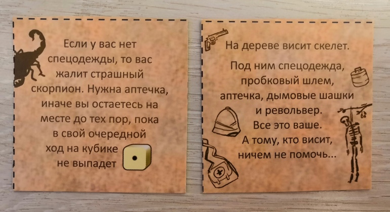 Многие писали, что это длинная, но увлекательная приключенческие игра. Но нигде я не читала, что она такая "ржачная" (простите за мой французский). Я не помню игру, в который бы мы так много смеялись. Благодаря карточкам событий 2 часа пролетели незаметно. Ну, разве не смешно, когда Дима встречается со скорпионом, а следом Даня попадает на клетку с ним и там... уже скелет? Это все, что осталось от путешественника, ужалённого скорпионом?)