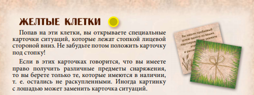 Про желтые клетки, на которых происходят события вот все, что написано в правилах. На самих картах ситуаций тоже нет слов о сбросе снаряжения.