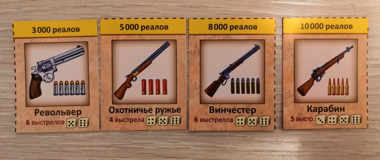 1. Самый главный вопрос. Как стрелять? Например, у меня револьвер. Я могу 6 раз бросить кубик и если мне надо убить змею, то из этих шести бросков, два должны быть со значением 5 и 6? Мы играли так. Это верно или нет?