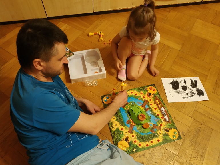 Я давно хотела в нее поиграть (редко достаем). Но играем только вдвоем с сестрой, а с ней по понятным причинам сейчас не видимся. Поэтому я предложила сыграть дочке, чуть-чуть упростив правила.