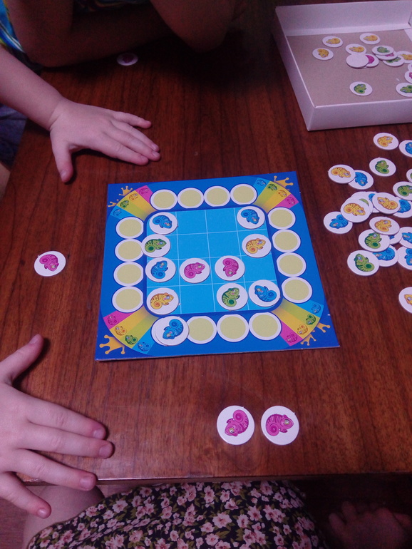 Хамелеон, от дрофы. Играли сегодня первый раз. Непонятно пока, пугали животных с удовольствием, попробуем ещё. У меня эта игра уже год в шкафу ввлялась. Вообще, объявила детям, что в Светлую седмицу будет каждый день по новой игре. Вот это был день первый. Бу-у...