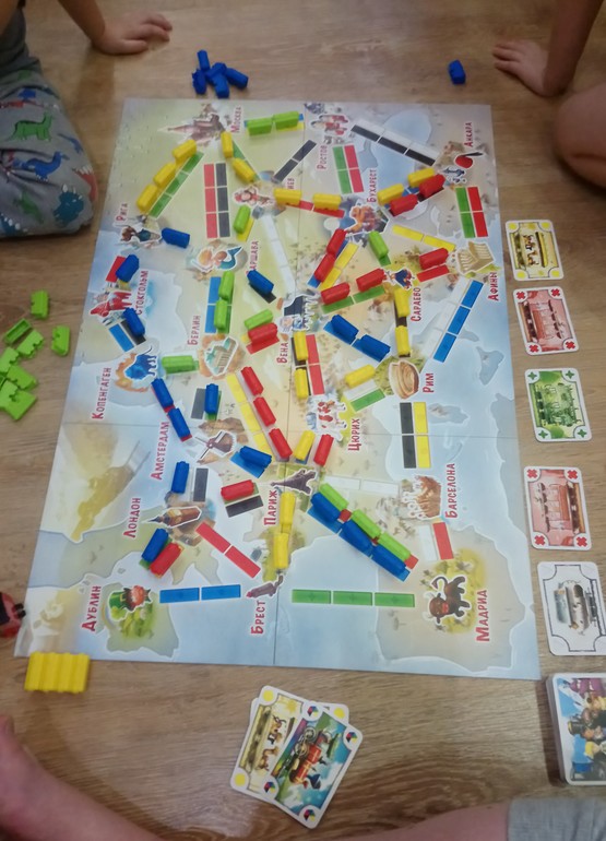 Сколько было радости в начале партии, сколько криков: «Ура! Мама согласилась!». И как все эти восторги сменились в финале тоской и негодованием со стороны детей, когда партия всё не заканчивалась, а денег всё не хватало, Играли мы ровно два часа. Выиграла я, скупив абсолютно все улицы, железнодорожные станции и предприятия. Дети сказали, что больше играть не будут , а мне так понравилось! Я бы ещё с удовольствием повторила завтра, например).