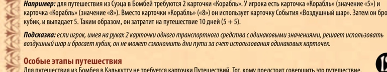 UPD Я неверно написала про Путешествие на воздушном шаре, бросок кубика можно делать только за одну карточку путешествий, а не за их сумму !! То есть играя карты со значением 5 и 7, мы кидаем кубик за одну из них, например за 7, и прибавляем значение кубика к 5.