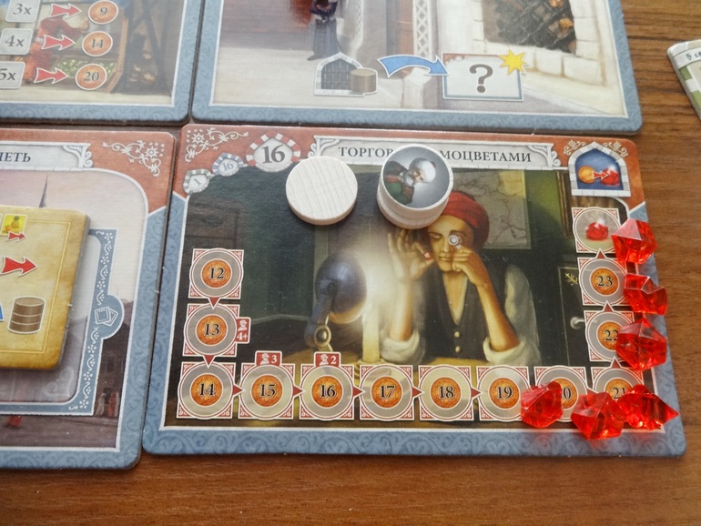 Хорошая вышла партия! Играли мы все примерно одинаково, в какой-то момент у каждого было по 4 рубина и каждый ход мог стать последним. Моя мама заполучила пятый рубин, когда мне и дочке оставалось по одному ходу до победы. Борьба нешуточная )). Каждый шел своим путем - я больше люблю копить деньги и покупать рубины у ювелира (попутно собирая тележку и посещая мечети);