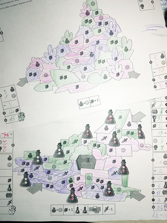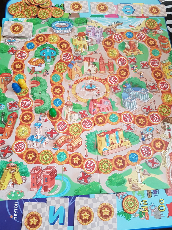 Да, не оригинал. Играли на листках цветными карандашами. Пока не заламинировала листы, сделаю позже. Раскрасили 4 поля, все очки суммировали. У меня 100, у мамы 99, у дочки 98 😄.