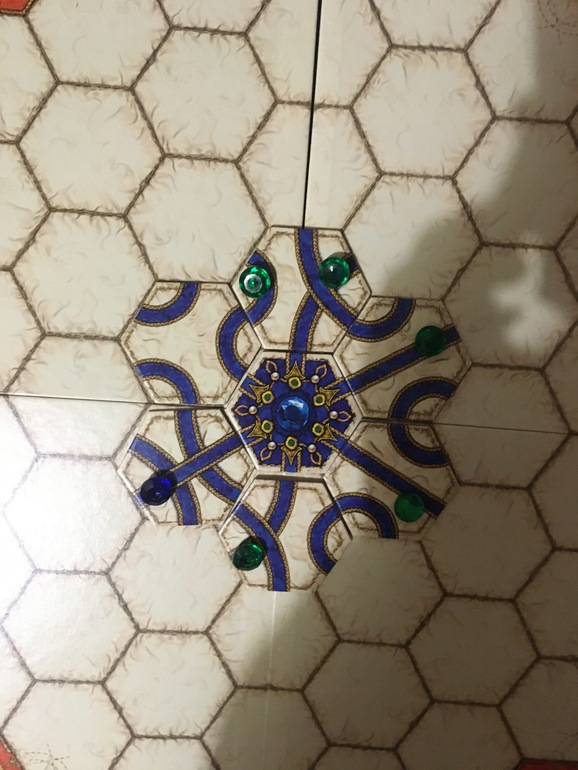 О! Эта стала любимицей. Наравне с Руммикубом, Азулом и Поездом. Прошлой ночью закончили со счетом 206 (я) и 214 (супруга) и то потому что я ошибся с тем, что игрок, выложивший последнюю плитку получает 6 очком. Вот эти-то очки и вырвали у меня победу.